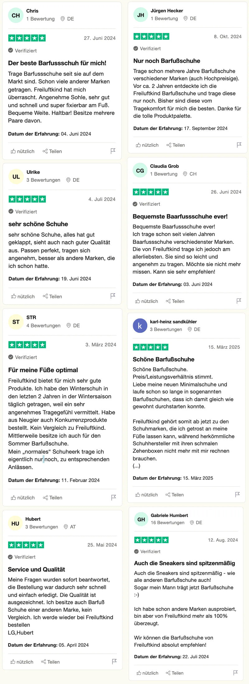 Das sagen zufriedene Kunden über die Freiluftkind-Schuhe: