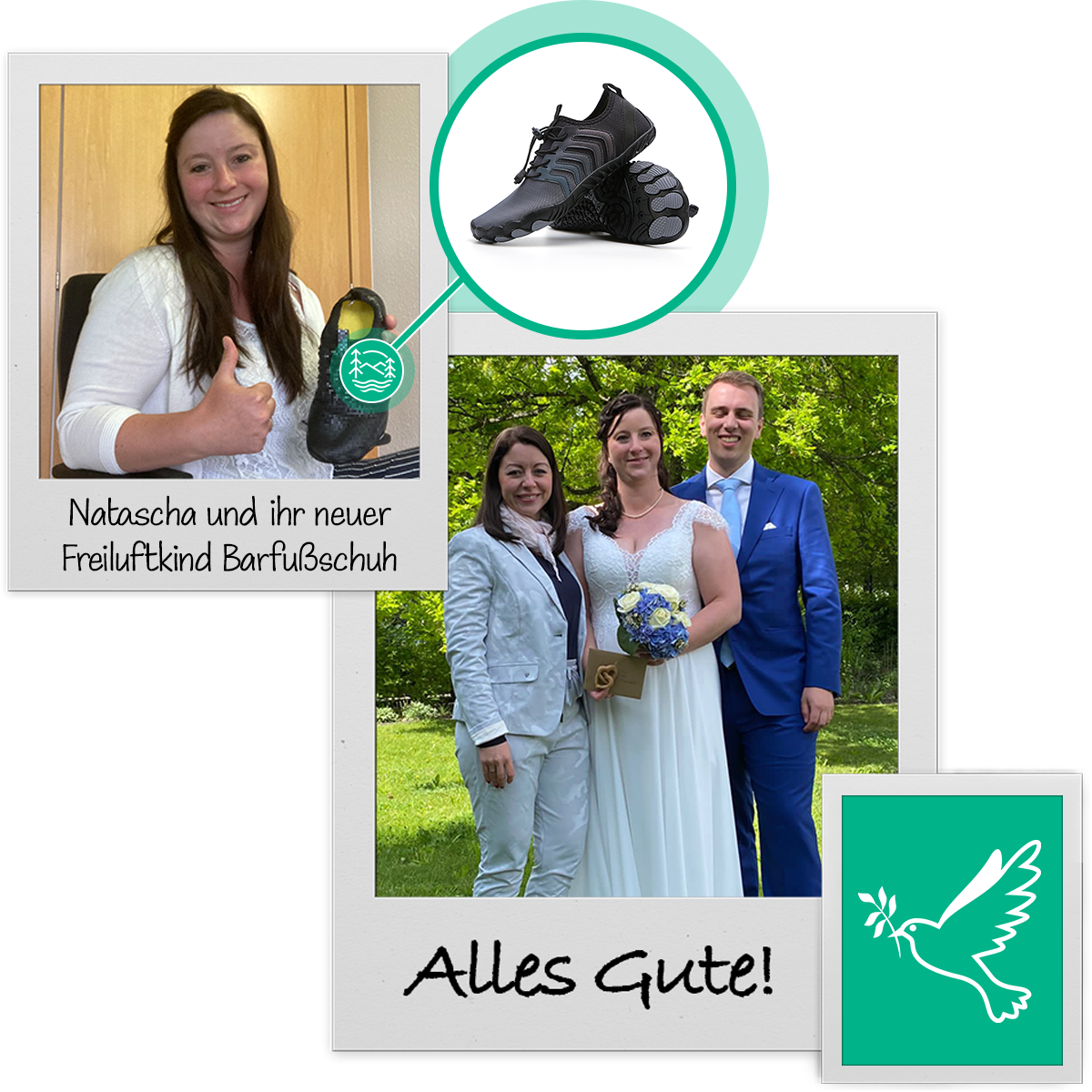 Vor einigen Tagen erhielten wir eine E-Mail von Natascha, die wir gerne mit euch teilen würden. Natascha hat am 28. Mai 2022 den schönsten Tag ihres Lebens erlebt und unsere Freiluftkind Barfußschuhe hatten die große Ehre auch auf der Gästeliste zu stehen.
