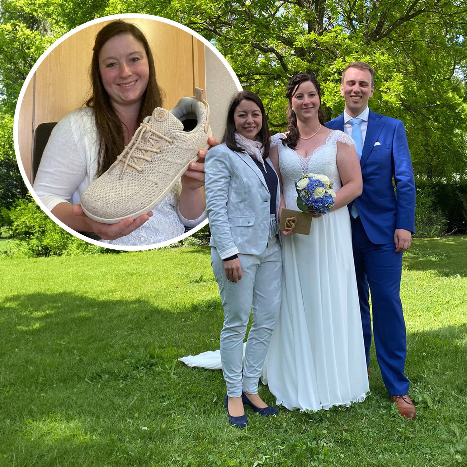 "Liebes Freiluftkind-Team, den schönsten Tag habe ich "barfuß" verbracht. Man hat sie nicht sehen können, jedenfalls nicht oft. Ich hatte die Schuhe bei meiner Hochzeit an und war begeistert. Durchgetanzt bis 3 Uhr keine Blasen.. dafür bin ich sehr dankbar. Leider ist der tolle Tag so schnell vorbei .. aber die Schuhe sind so toll - jetzt trage ich sie jeden Tag. Bester Altagsbegleiter auf der Arbeit - der Schuh fällt nicht auf und ist schön luftig. Ich muss mir umbedingt ein zweites paar Paar bestellen.. oder 3.. mal sehen.